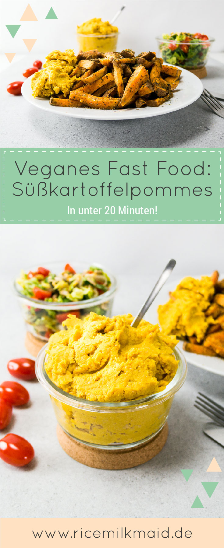 Ricemilkmaid-Blog-Pinterest-Vegan-Süßkartoffelpommes-Kichererbsenpaste-Tomatensalat-20-Minuten-Fast-Food Süßkartoffelpommes, Kichererbsenpaste, Tomaten, Tomatensalat, Sojasauce, Kokosblütenzucker, orientalisch, mediterran, vegan, Infographic